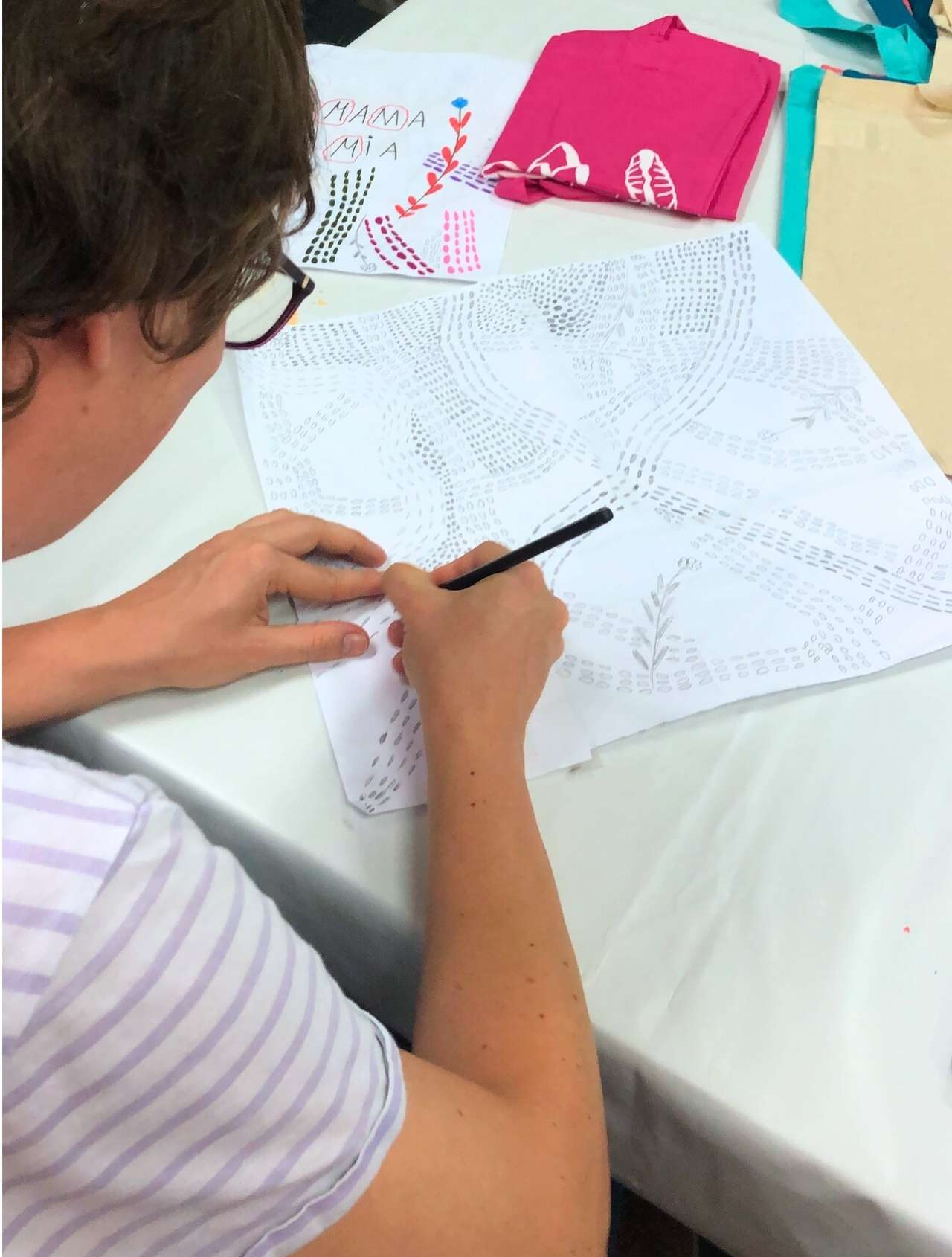 "Es war schön zu erleben, wie Marta sich die Zeit genommen hat, um mit jedem von uns ein eigenes Sieb zu belichten. Anschließend habe ich mein eigenes Motiv auf drei Jutebeutel gedruckt. Ich war total stolz, dass ich das trotz angeborener Gehirnschädigung alles so hinbekommen habe. Das hat mir auch wieder neu Mut gemacht für alles andere, was ich so im Leben anpacke. Parallel zum Kurs wurde meine Mutter nämlich sehr krank. Die Beutel habe ich für meine Mutter, meine Tochter und mich gemacht, weil mir meine Familie am allerwichtigsten ist. Danke an Marta und das ganze Kulturwerk Team. Ihr macht tolle Arbeit!"